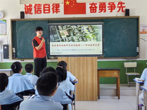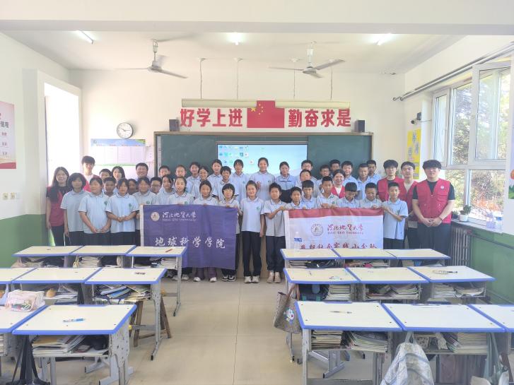 为促进高校与中小学之间的交流与合作,推动教育资源的共享和优化配置,提升公众对地质科学的认知水平,增强社会对地质灾害的防范意识和应对能力,从而推动社会的可持续发展。6月4日上午,英国beat365官方网站暑期社会实践小分队在指导老师张敏杰、李振的带领下,走进临城县西竖中心小学,开展地质科普公益活动,分别为五年级、六年级的同学们送上一场别开生面的自然科学课堂。