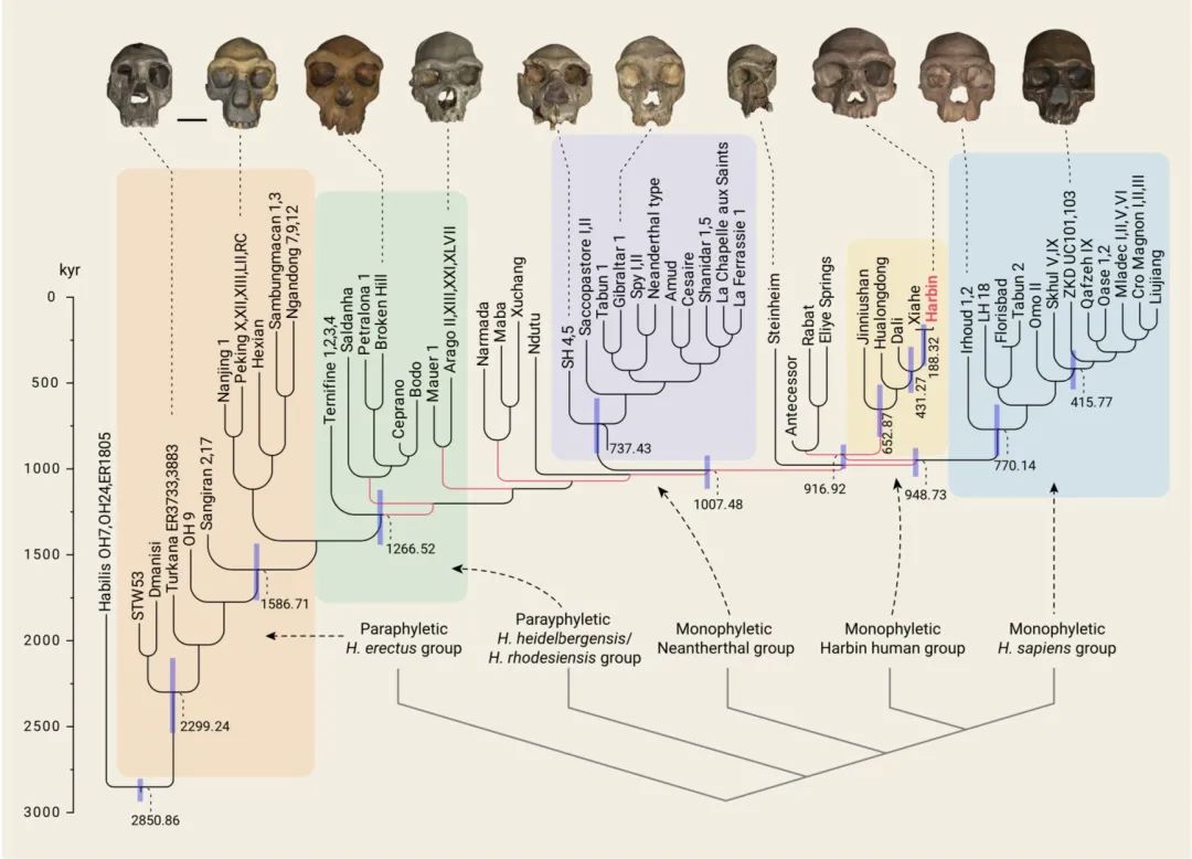 根据这个家谱,研究团队可以确定 “龙人”到底跟哪些已有的人类种群更接近。“结果就发现他它跟原有的大荔人、金牛山人、华龙洞人、夏河人等构成了东亚地区特有的一个新的演化支系,这一支系跟智人是一个姊妹群的关系。”