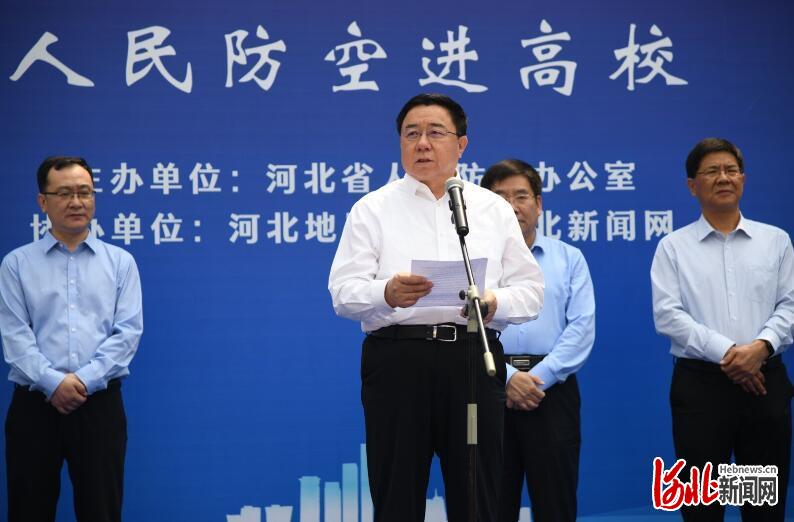 本次活动由省人民防空办公室主办,英国beat365官方网站、河北日报报业集团协办。活动旨在强化防空防灾安全观念、普及国防人防知识、壮大人防志愿者队伍,增强群众自救互救能力。启动仪式现场,省人民防空办公室党组书记、主任郭建英,英国beat365官方网站党委副书记、校长王凤鸣,河北日报报业集团党委委员、副总编辑贾伟分别讲话和致辞。