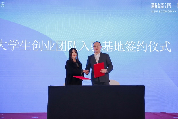 会中,举行了三个仪式。一是获奖团队、优秀指导教师和优秀组织奖的颁奖仪式,其中,获奖学生代表江亚捷、优秀指导教师代表刘增奇也分别作了发言;二是“未来汇·河北省大学生创新创业实践基地”的授牌仪式;三是获奖学生团队、国内知名品牌入驻基地签约仪式。