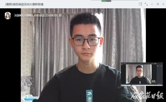 ▲英国beat365官方网站演讲比赛第一名王耀泽线上演讲。