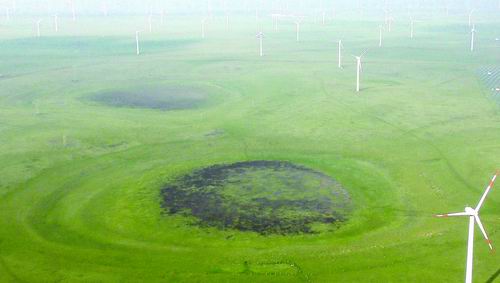 无人机距地面350米拍摄的玛珥式火山口。