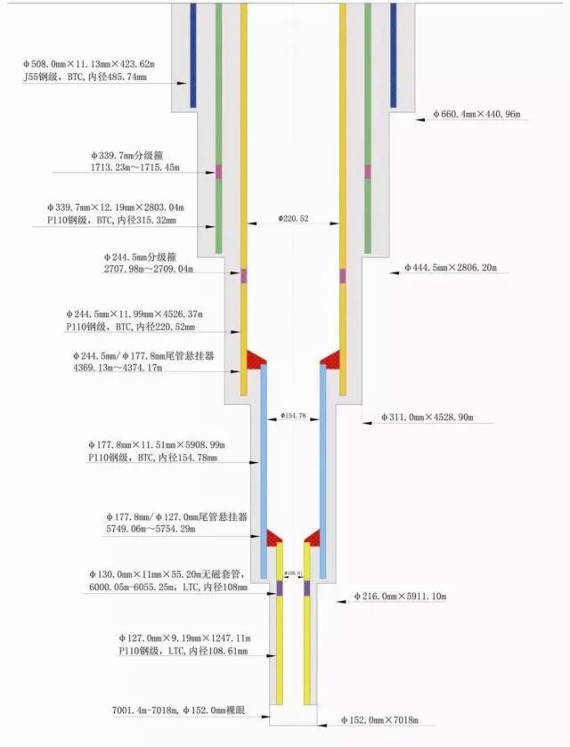 “地壳一号”万米钻机,松科二井完井结构及取心成果图