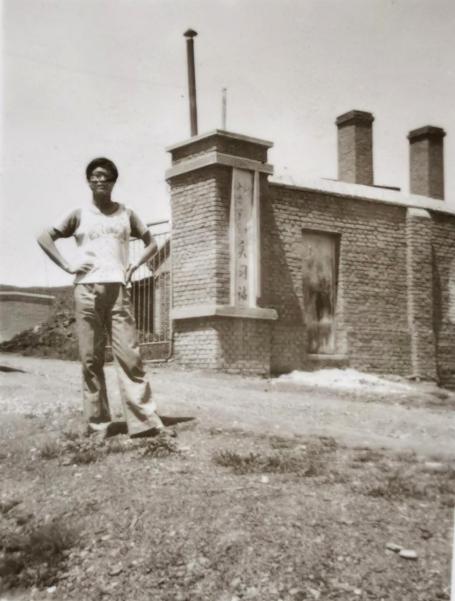 (这个照片是首次公开的。同学袁一凡拍摄于1987年7月下花园实习站院内。照片的左侧是实习办公室,右侧是食堂,远处是鸡鸣山。)