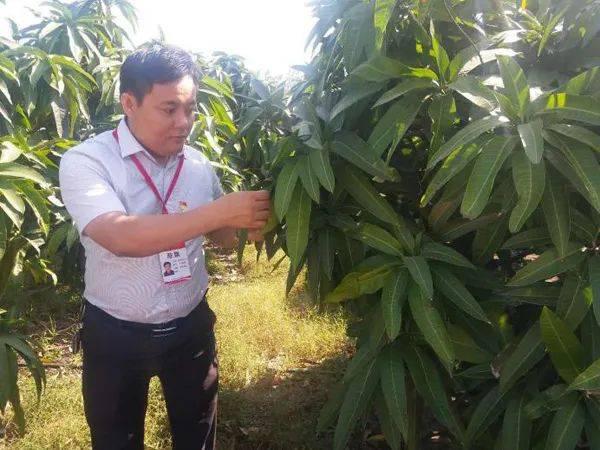 在母爸村的种植园查看芒果生长情况