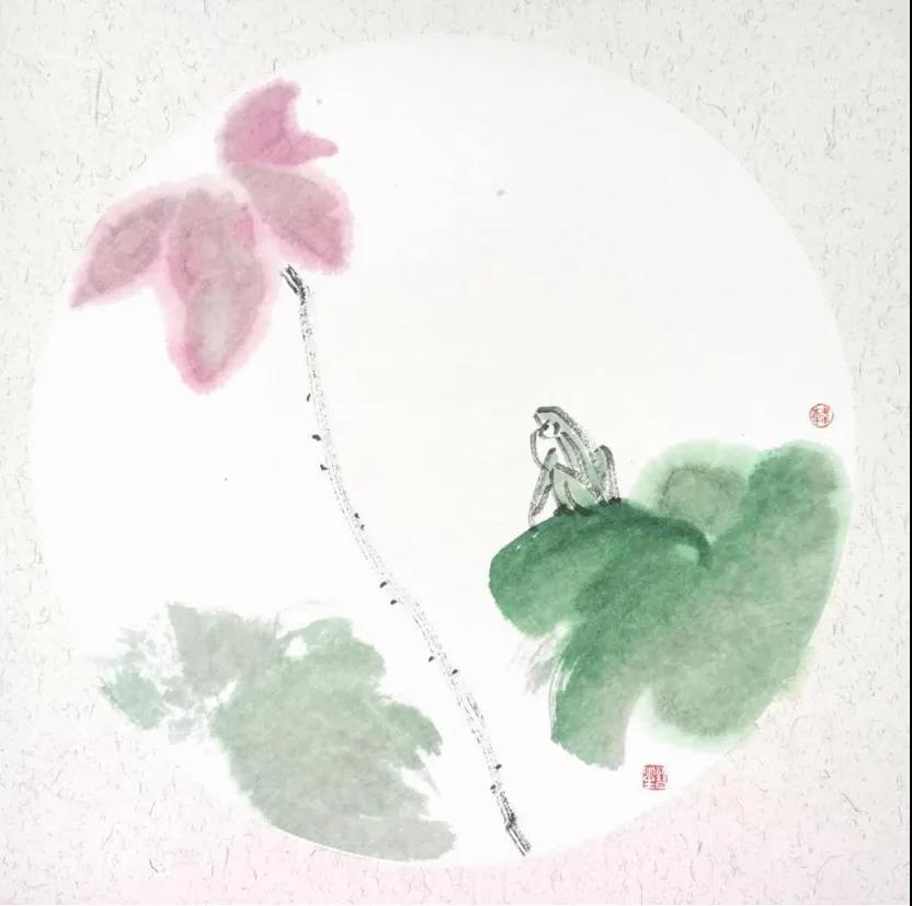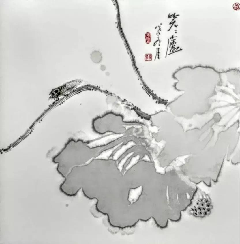从画家的每一幅小品里,都能通过对立、拉抻发现空间与时间的无涯和旷远……背身而去时,一只细描的蝉如音容犹在的故人,沿着一脉无限的荷梗,走向无垠。而一滴剩墨涂染的荷叶,亦如破碎的故国,在纸上飘摇不已。